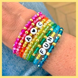 Bracelet LETTRE 20,00 € Vue rapide NOIR NACRE CREME ROSE CLAIR WATERMELON SAUMON JAUNE TURQUOISE TURQUOISE CLAIR VERT MENTHE BLEU OCEAN BLEU CIEL LILAS VIOLET MULTICOLORE