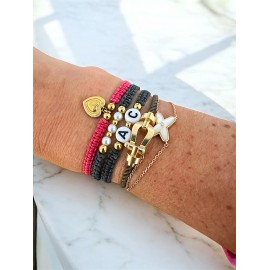 Un bracelet entièrement tressé à la main par mes soins, en fil de coton et perles en nacre / acier inoxydable.